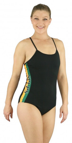 - Women's racer with one sided spliced panel in contrast fabric